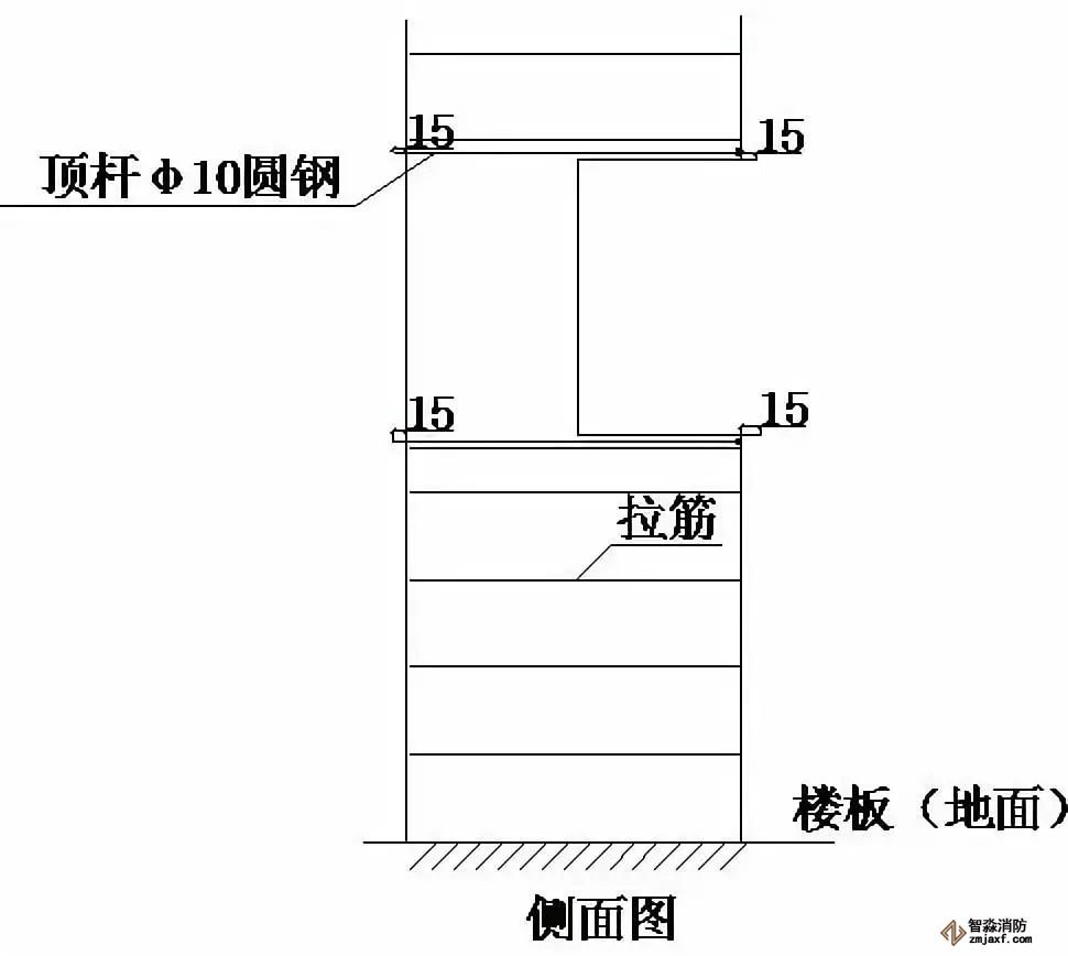 ⑸壳体口必须要紧贴模板,具体做法就是在壳体两侧各加焊一根ф10的顶筋,顶筋长度与剪力墙体厚度相同,顶筋一端与壳体口焊齐,合模前沿壳体口边缘粘贴25mm宽、10mm厚海绵条,保证在合模时壳体口与模板接触上。保证拆模后壳体口露出来与墙体齐平。