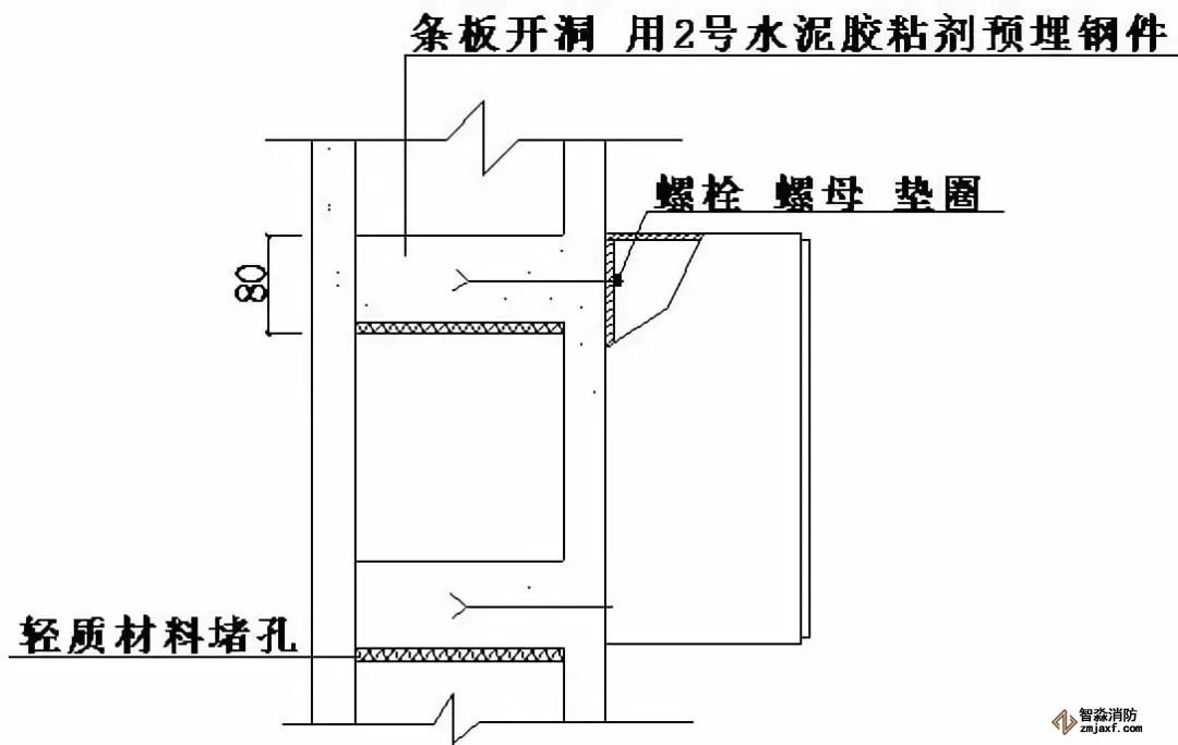 ⑷搭接板应预埋,其与窗框或门框可螺栓连接或焊接。