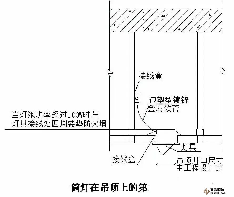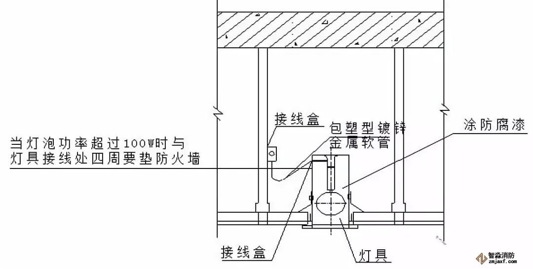 装饰灯具前的导线在无法穿钢管和金属软管时,导线在可燃装饰材料内通过时可套耐火阻燃砝蜡管软管,这样既可以保护导线绝缘层受损,又可避免导线外皮破损对外导电、引起火灾等。