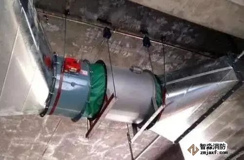 10、排烟风机入口处和在排烟支管上未设排烟防火阀,排烟防火阀未与排烟风机联锁,平时不能自动关闭。