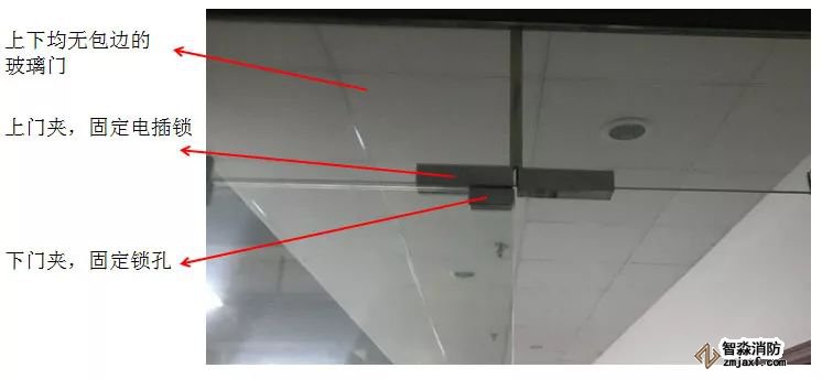 电插锁是暗装,要将锁体埋入门框内,上图是电插锁最常见的安装方式,要求玻璃门上下均有包边