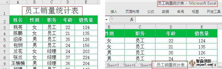 上图左边所示的标题“员工销量统计表”,无非就是告诉大家这是一张什么表,除此以外不具有任何功能。