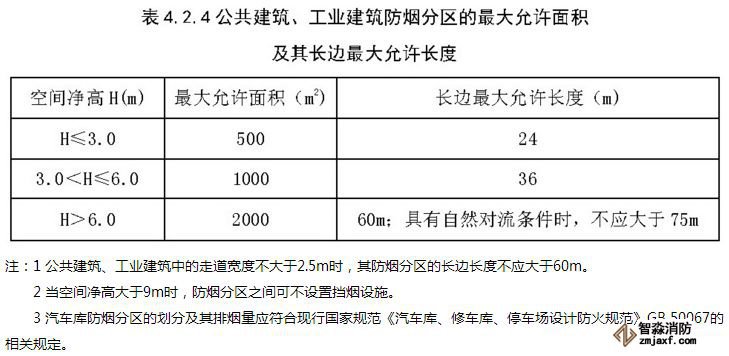 H>6m,防烟分区长边不应大于60m,具有自然对流条件时不应大于75m,最大允许面积为2000㎡。