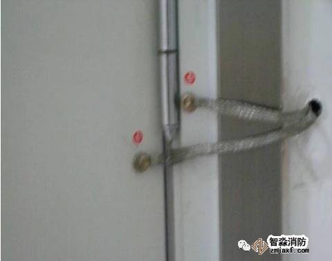1、配电室铁制防火门及框要用铜编织线与接地干线连接。