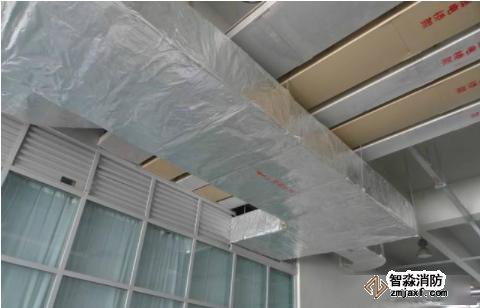 防火分区隔墙两侧防火阀距墙表面不大于200mm,穿越墙体风管段应由2~3mm钢板制作。防火阀直径大于630mm时应设固定独立支、吊架,且不得阻碍手柄的操作。