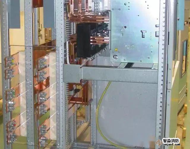 这是载流量为4000A的低压开关柜图片,我们能从右上角看到4000A的断路器图片。注意到图中的导线都是铜排,然而从断路器上垂下一根黄绿色的电缆,它就是接地线。尽管这根接地线如此之粗,但它还是多芯线。