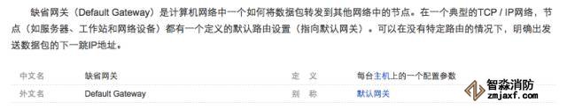缺省网关(Default Gateway)是计算机网络中一个如何将数据包转发到其他网络中的节点。在一个典型的TCP / IP网络,节点(如服务器、工作站和网络设备)都有一个定义的默认路由设置(指向默认网关)。可以在没有特定路由的情况下,明确出发送数据包的下一跳IP地址。