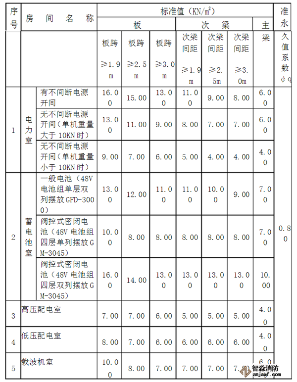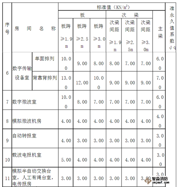 机房建筑楼面等效均布活荷载值,系根据目前已有的有代表性的通信设备的重量、排列方式及建筑结构的不同梁板布置,按内力(弯矩、剪力)等值的原则计算确定,机房的数值,也适用于无线寻呼机房4