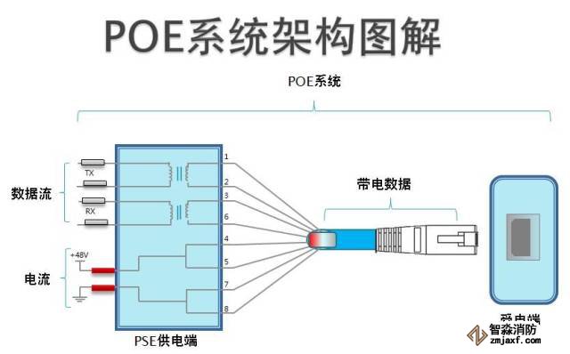 4、消除供电安全隐患,PoE供电端设备只会为需要供电的设备供电,只有连接了需要供电的设备,以太网电缆才会有电压存在,因而消除了线路上漏电的风险;