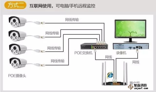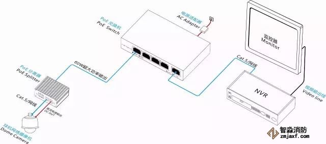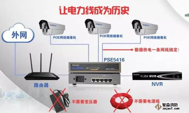 因为网络线容易受到强磁场的干扰,我们在POE供电时不用单独敷设220V的电源,减少信号的干扰导致图像不清晰、衰减大的因素。 |