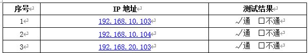 Ø 预置条件:各设备运行连接状态正常,割接前30分钟按照下表利用PC机192.168.10.1进行PING测试并做好记录,用于与割接后测试结果进行比较