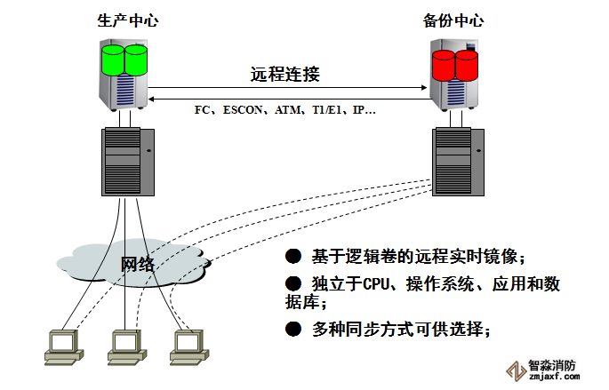 该方式可以备份系统的价格满足备份和异地容灾功能,能够避免主生产中心由于地震、火灾或其他灾害造成的数据丢失。