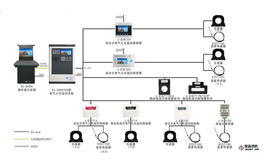 系统适用于工厂、大型库房、轨道交通、写字楼、商业建筑、宾馆、住宅及娱乐场所等用电复杂、电气火灾发生几率较大、人流密集的公共场所。
