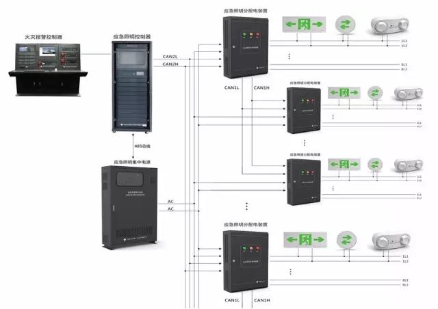 系统由应急照明控制器、应急照明集中电源、应急照明分配电装置、消防应急灯具(包括22种型号的消防应急照明灯、消防应急标志灯)等设备组成,是一个整合了火灾报警控制、应急照明预案、疏散指示预案的完整系统,其报警信息和逃生信息能直观显示并且方便操作控制。