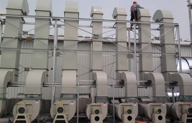 采取机械排风方式,以风机所产生的气体流动和压力差,利用排烟管道将烟气排出或稀释烟气的浓度。