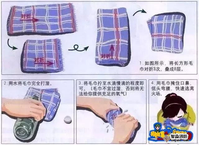 商场是物资高度集中的场所,商品种类多,发生火灾后,可就近利用逃生的物资或工具。如将毛巾、口罩浸湿后捂住口、鼻,可制成防烟工具;
