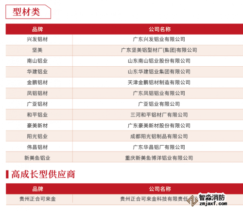 型材类供应商十强榜单分析: