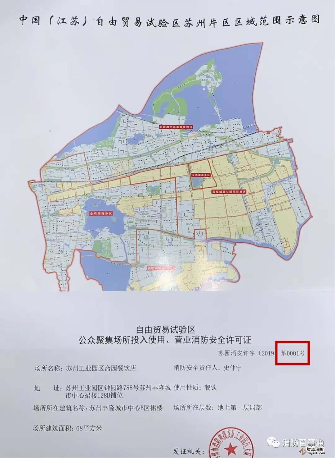 原标题:苏州自贸片区发出全省首张告知承诺下消防安全行政许可证