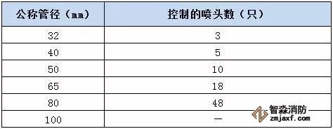 3、管网就是普通的热镀锌钢管,关于管径和洒水喷头的数量,参考如下: