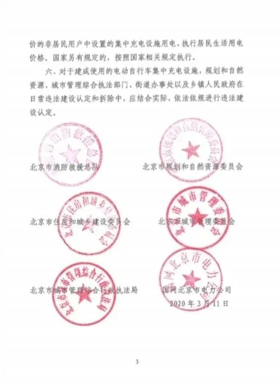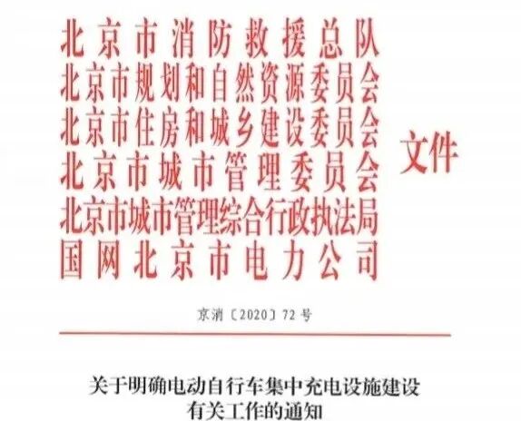为推动解决电动自行车集中充电设施建设进度缓慢的瓶颈性问题,提高设施覆盖率和居民的使用率,从源头防范化解电动自行车火灾风险危害。近日,北京市消防救援总队、市规划和自然资源委员会、市住房和城乡建设委员会、市城市管理委员会、市城市管理综合行政执法局、国网北京市电力公司六部门联合印发《关于明确电动自行车集中充电设施建设有关工作的通知》。