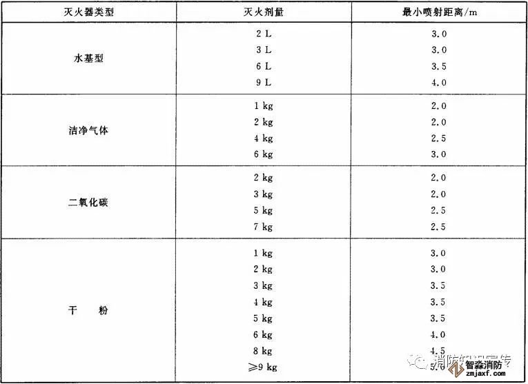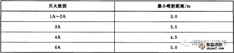 灭A类火的灭火器在20℃时的最小有效喷射距离应符合表5的规定。