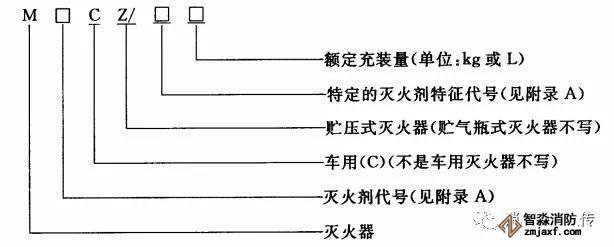 灭火器的型号编制方法如下: