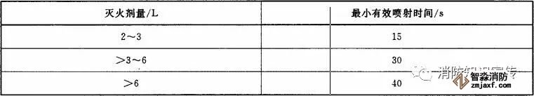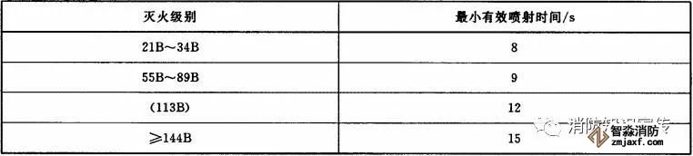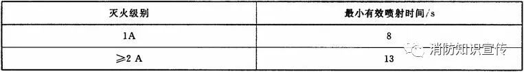 灭A类火的灭火器(水基型灭火器除外)在20℃时的最小有效喷射时间应符合表3的规定。