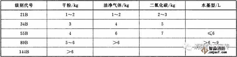 灭火器20℃时灭B类火的性能,不应小于表8的规定。灭火器在最低使用温度时灭B类火的性能,可比20℃时灭火性能降低两个级别。