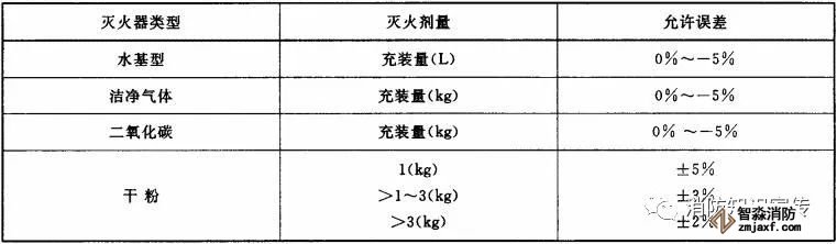 灭火器的总质量不应大于20 kg,其中二氧化碳灭火器的总质量不应大于23 kg,灭火器的灭火剂充装总量误差应符合表1的规定。