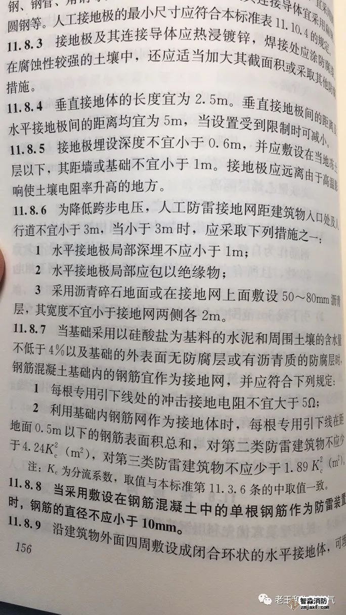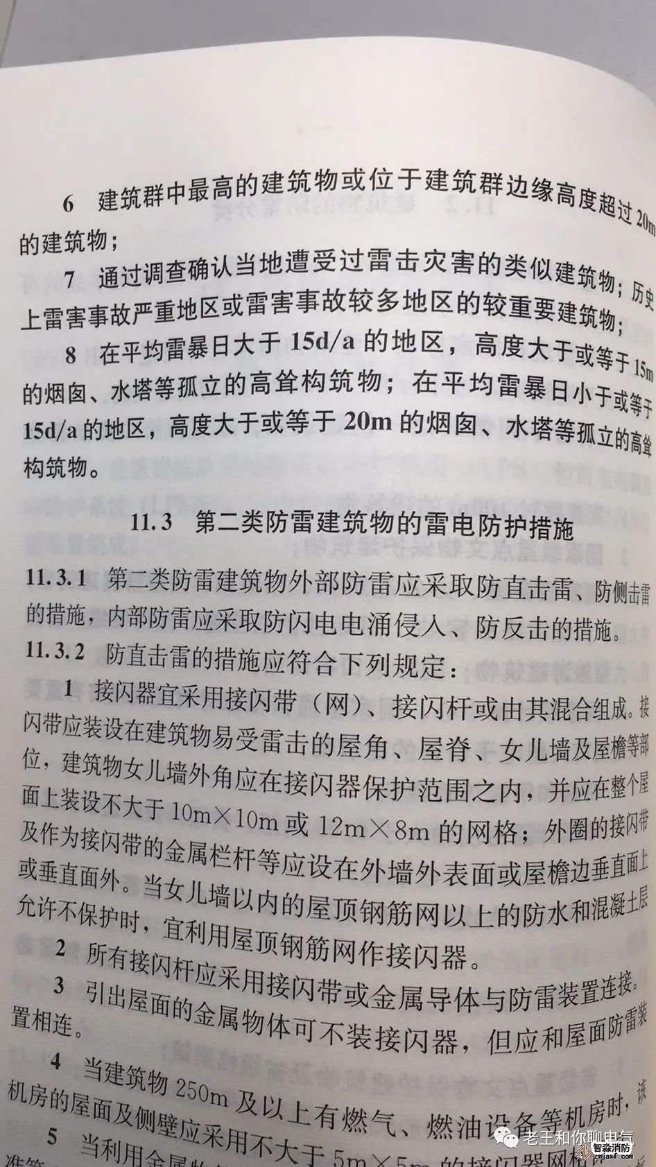 解析:防雷部分没有什么可说的,基本是《雷规》GB50057的内容,此条与旧《民规》11.8.9条完全一致。值得注意的是此处强调了单根钢筋作为防雷装置不应小于10mm,《雷规》也有要求:敷设在混凝土中作为防雷装置的钢筋或圆钢,当仅为一根时,其直径不应小于10mm;对专设引下线暗敷时,要求其圆钢直径不应小于10mm。