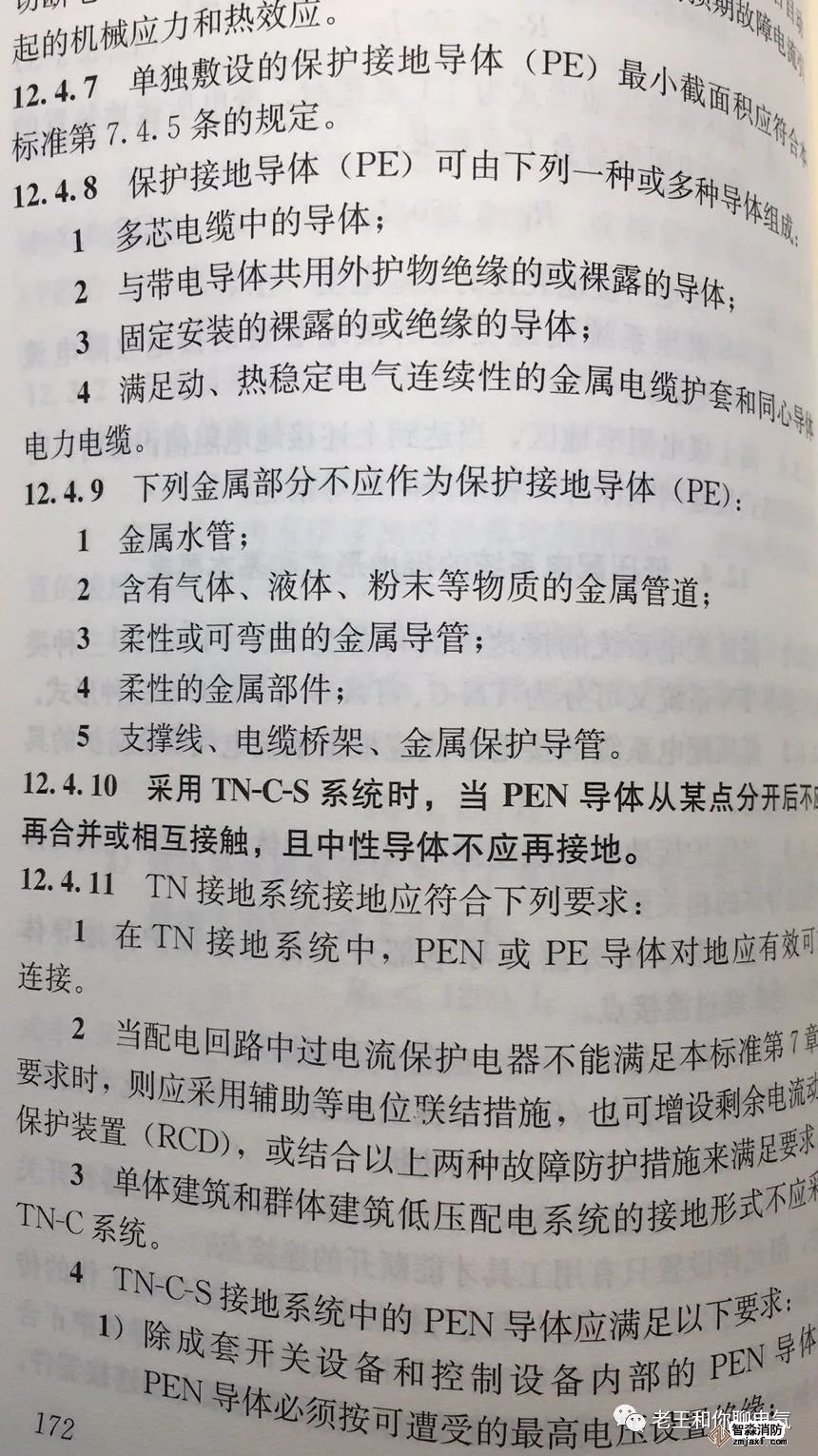解析:旧《民规》为外界可导电部分,此处改为电气装置外可导电部分,有很大进步,但是“严禁保护接地导体(PEN)”漏掉了“中性”二字,应该是“保护接地中性导体”