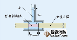 一般情况下,对在地下铺设的光缆要求其具备防水特性。试验方法有各种各样,本公司在常温下连续24小时进行以下试验时,一般以光缆内不会有3m程度以上程度的进水为标准,这个标准根据光缆的构造有所不同。
