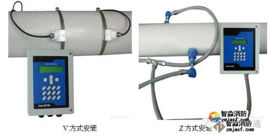 超声波流量计的传感器一般采用V方式和Z方式安装,通常情况下,管径小于300mm时,采用V方式安装,管径大于200mm时,采用Z方式安装。对于即可以用V方式安装又可以Z方式安装的传感器,尽量选用Z方式。实践表明,Z方式安装的传感器超声波信号强度高,测量的稳定性也好,图2。