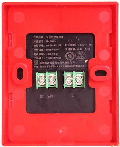LD1000EH(F)为非编码型火灾声光警报器,二线制,接通DC 24V 电源即可启动声光警报。可与本公司生产LD6800EC-1 或LD6800EC-2 输出模块配接使用,当输出模块提供DC 24V 电源后, LD1000EH(F)火灾声光警报器直接发出白色闪光和火警声。