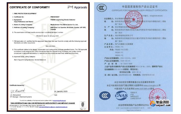 近日,经过为期一年的努力,青鸟消防子公司美安Maple Armor研发生产的PipeSense™管路可寻址吸气式火灾探测器FW2601系列,凭借卓越性能和可靠品质,成功通过美国FM认证,成为同时拥有FM及CCC双认证的产品(2023年9月已获CCC证书),为青鸟消防集团工业产品再添一项国际认可!