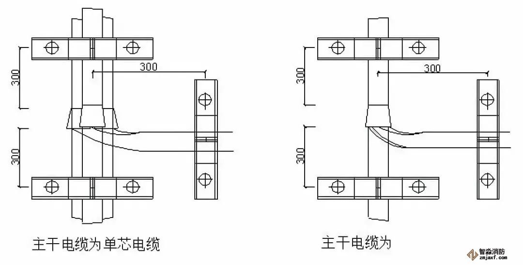 ⑵预分支电缆分主干电缆为多芯和单芯两种形式。