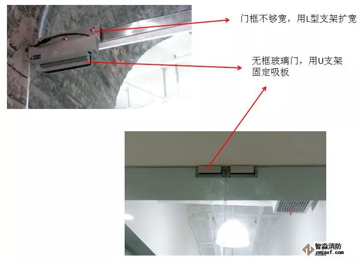 当门框不够宽时,借助L支架拓展门框宽度,让磁力锁得以“挂起来”