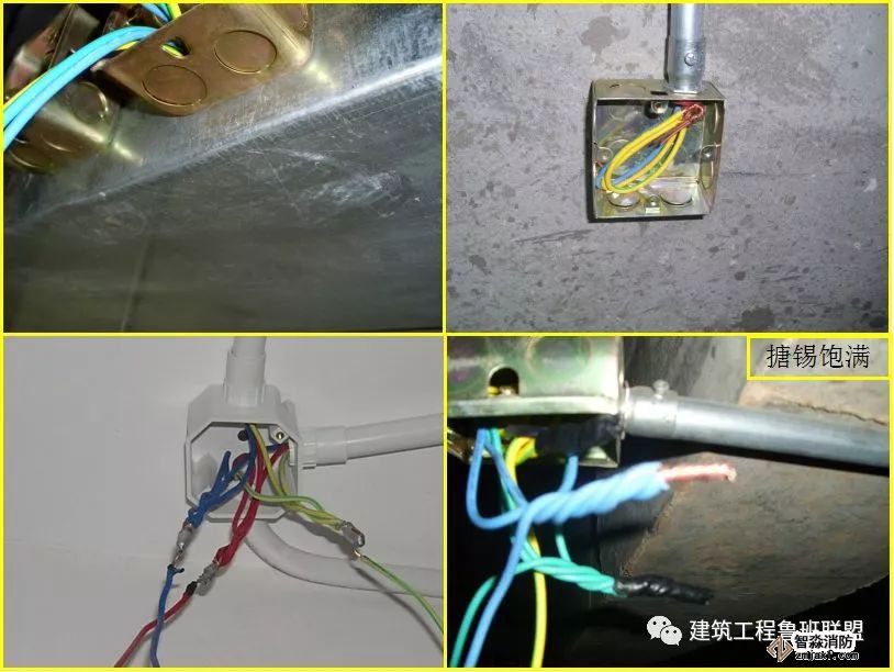 (1)盒内穿线:盒、箱内清洁无杂物、护口,护线套管齐全无脱落,导线排列整齐,并留有适当的裕量。导线在管内无接头,不进入盒、箱的垂直管子上口穿线后密封良好,导线连接牢固,不伤线芯,搪锡饱满,包扎严密,绝缘良好。