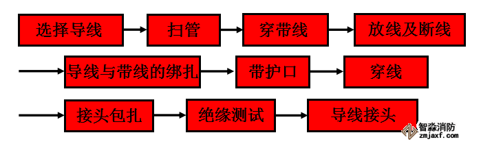 (1)穿带线的同时,也检查了管路是否畅通,管路的走向及盒、箱的位置是否符合设计及施工图的要求。 苏州智淼消防工程安装公司