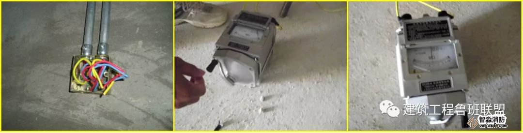 a. 电气器具未安装前进行线路绝缘摇测时,首先将灯头盒内导线分开,开关盒内导线连通。摇测应将干线和支线分开,一人摇测,一人应及时读数并记录。摇动速度应保持在120r/min左右,读数应采用1min后的读数为宜。