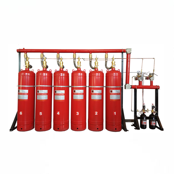 七氟丙烷灭火设备由灭火剂瓶组(包括灭火剂、储存容器及容器阀)、启动瓶组(包括启动气体及贮存容器和容器阀)、高压软管、液体单向阀、选择阀、信号反馈装置、安全阀、集流管、瓶组架、检漏部件、管网及喷头、启动气体管路、气体单向阀、低泄高封阀及泄压装置等组成。其中4.2MPa七氟丙烷灭火设备的储存容器采用焊接气瓶,5.6MPa七氟丙烷灭火设备的储存容器采用无缝气瓶。