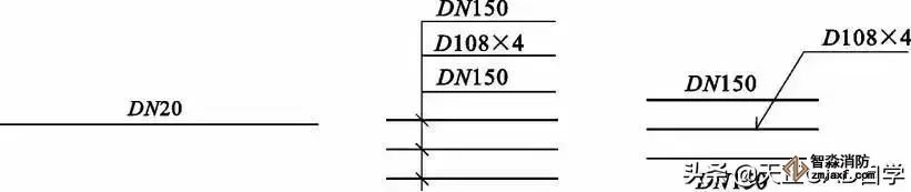 管径应以mm为单位。水煤气输送钢管(镀锌或非镀锌)、铸铁管等管材,管径宜以公称直径DN表示(如DN15、DN50);无缝钢管、螺旋、铜管、不锈钢管等管材,管径宜以外径D×壁厚表示(如D108×4、D159×4.5等);钢筋混凝土(或混凝土)管、陶土管、耐酸陶瓷管、缸瓦管等管材,管径宜以内径d表示(如d230、d380等);塑料管材,管径宜按产品标准的方法表示。当设计均用公称直径DN表示管径时,应用公称直径DN与相应产品规格对照表。