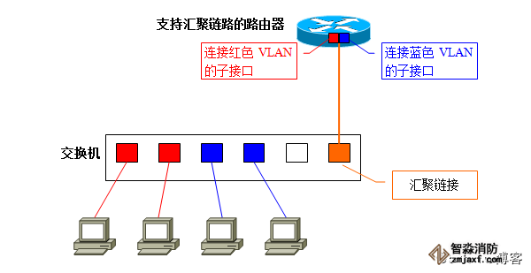 汇聚链路上流通的数据帧,都被附加了用于识别分属于哪个VLAN的特殊信息。