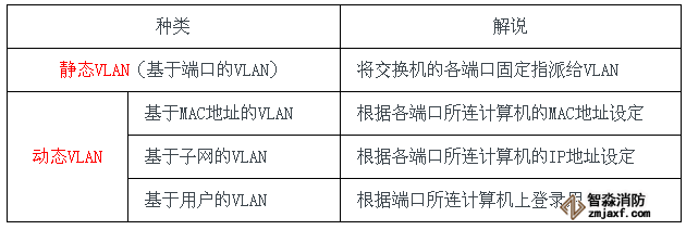 另一方面,动态VLAN则是根据每个端口所连的计算机,随时改变端口所属的VLAN。这就可以避免上述的更改设定之类的操作。动态VLAN可以大致分为3类: