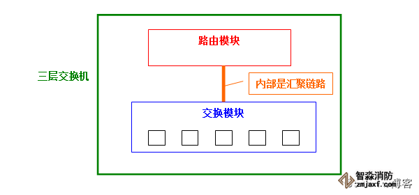 在三层交换机内部数据究竟是怎样传播的呢?基本上,它和使用汇聚链路连接路由器与交换机时的情形相同。