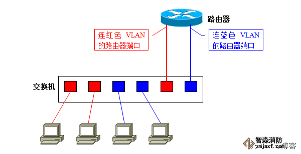 请大家再次回忆一下:VLAN是广播域。而通常两个广播域之间由路由器连接,广播域之间来往的数据包都是由路由器中继的。因此,VLAN间的通信也需要路由器提供中继服务,这被称作“VLAN间路由”。