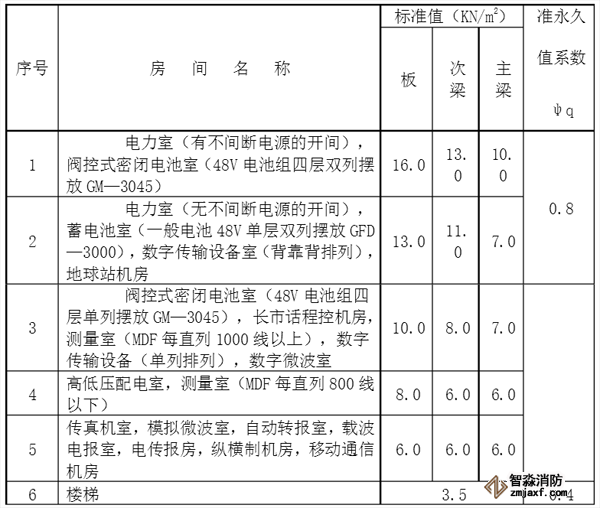 机房建筑楼面等效均布活荷载值,系根据目前已有的有代表性的通信设备的重量、排列方式及建筑结构的不同梁板布置,按内力(弯矩、剪力)等值的原则计算确定,机房的数值,也适用于无线寻呼机房4