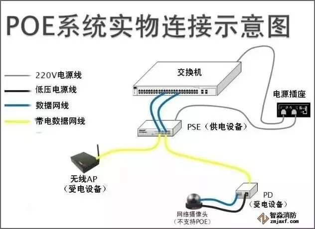 4、消除供电安全隐患,PoE供电端设备只会为需要供电的设备供电,只有连接了需要供电的设备,以太网电缆才会有电压存在,因而消除了线路上漏电的风险;