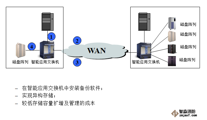该方式可以备份系统的价格满足备份和异地容灾功能,能够避免主生产中心由于地震、火灾或其他灾害造成的数据丢失。