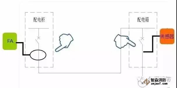 如下图所示,虽然两个系统同样是针对线路进行检测,但是检测位置并不相同。其中左为电气火灾报警系统检测位置,右为消防电源监控系统检测位置。